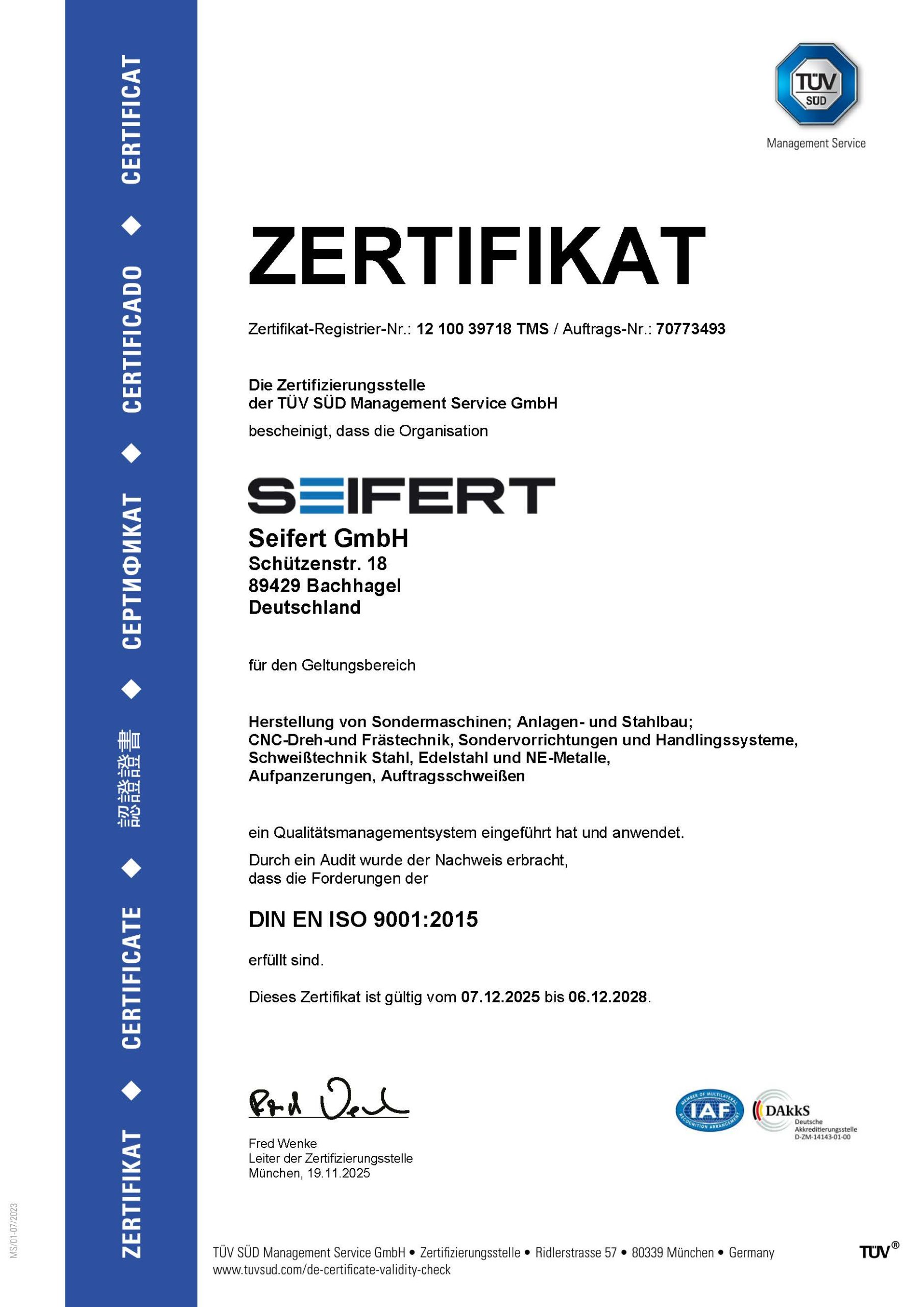 Qualität ist kein Zufall – sie ist messbar. Die Seifert GmbH ist zertifiziert nach: